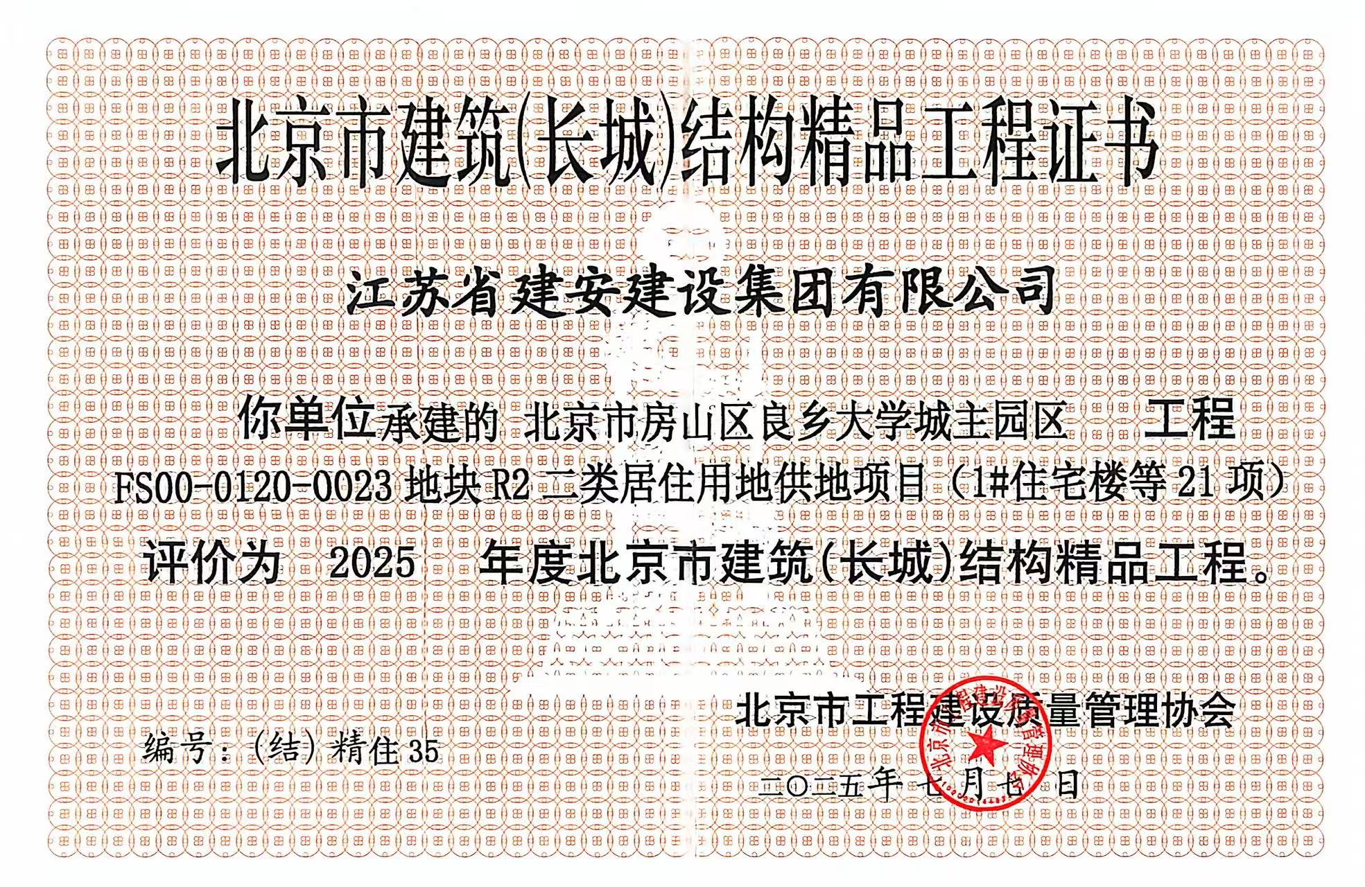 荣获“2025年度北京市建筑(长城)结构精品工程”